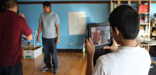 CAPE students at Goudy Elementary use iPads to record a video about bullies.
